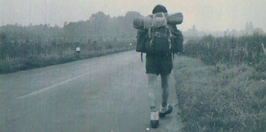 John hitchhiking in Germany, south of Koln