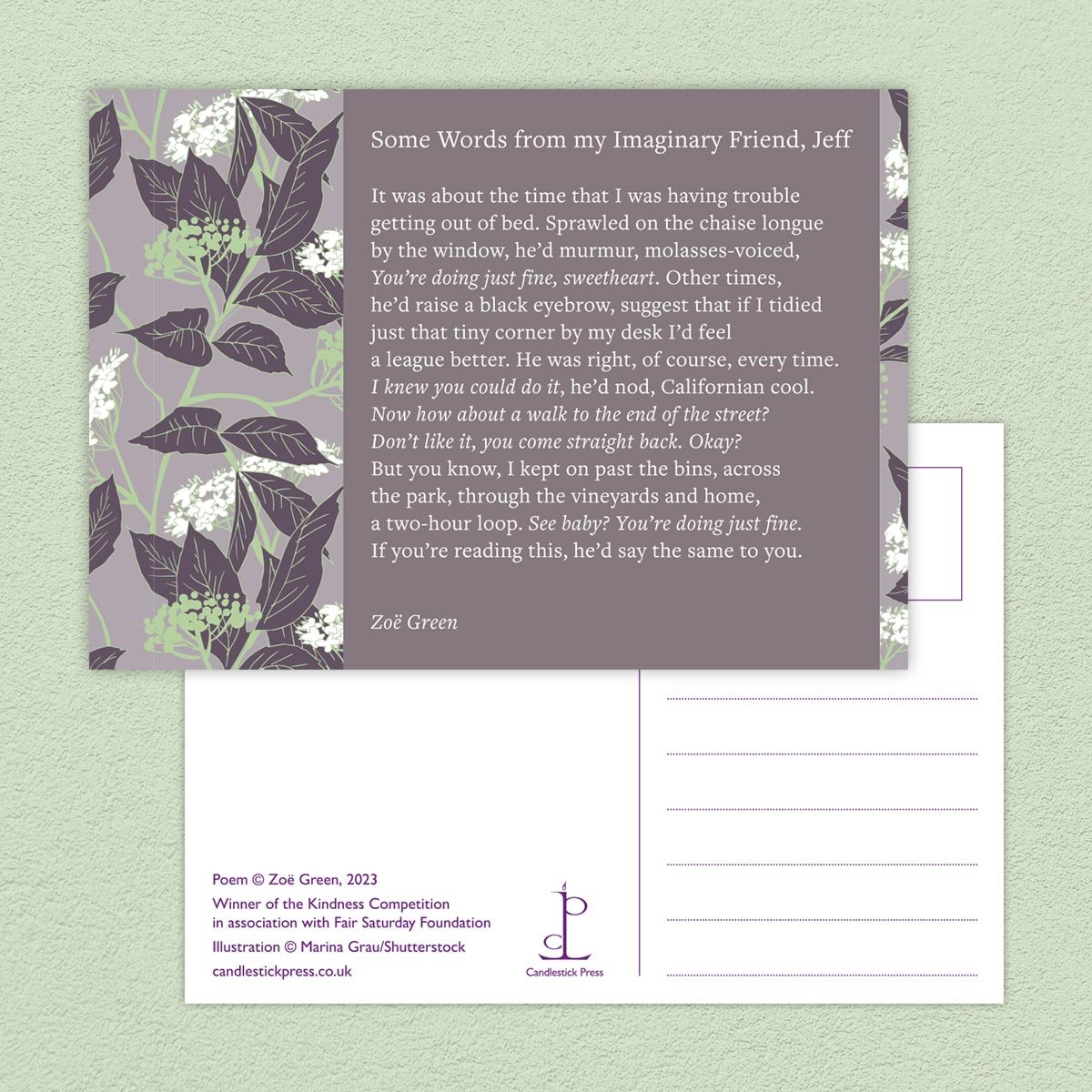 Included are two special edition postcards featuring poems by Olga Dermott-Bond and Zoë Green, who were the winners in our Kindness Poem Competition.